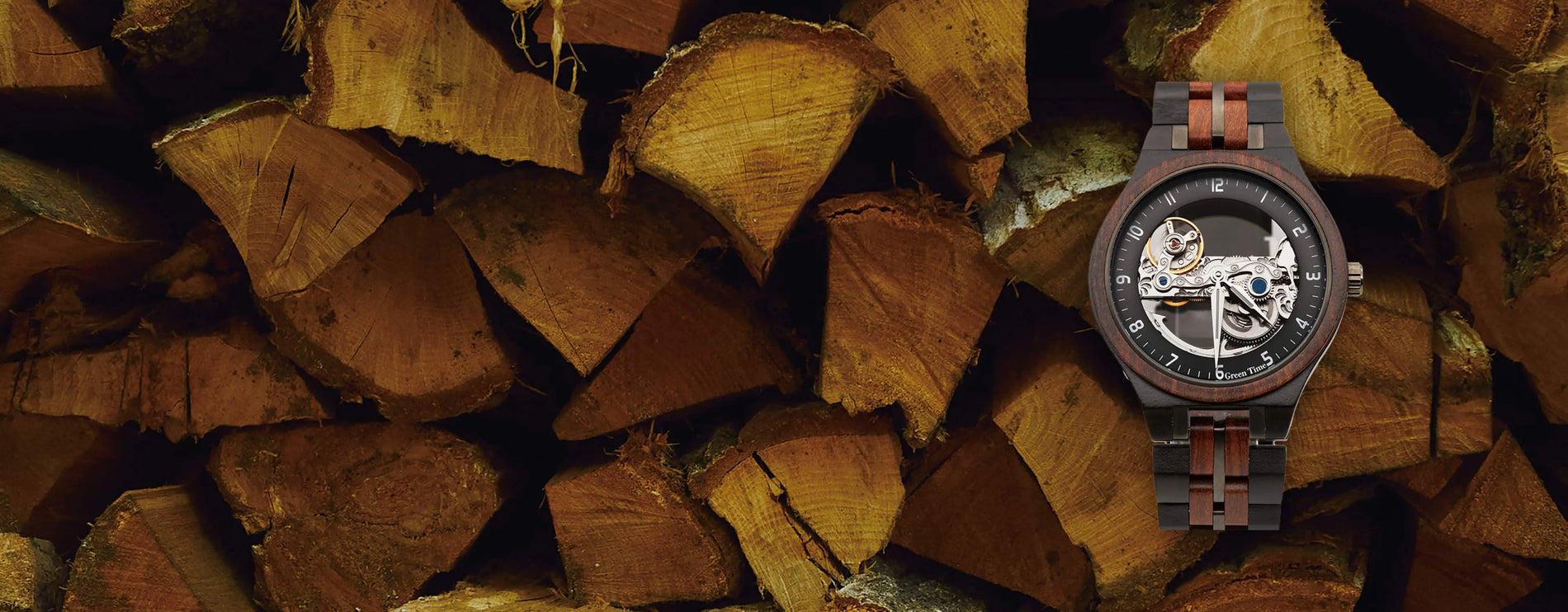 ZW200Aはフェイスの下側にムーブメントの動きを覗かせるダブルテンプルの仕様で、裏蓋はスケルトンになっていることから、機械式自動巻き時計の繊細な動きをより体感することができます。時間を示すインデックスはピンクゴールド色で、あたたかみとシックな高級感を醸し出しています。フェイス上部にパワーリザーブ、その中にはGreenTimeのロゴを配置。メタリックなブラックのフェイスと、ベルト中央に使用されているエボニーが全体のデザインを引き締めた、木目のナチュラル感とカッコ良さを兼ね備えた、独特の腕時計に仕上がっています。 機械式ムーブメントに内蔵されたローターと呼ばれる半月型の金属部品が、装着した日常の動作の中で回転し、歯車に動きが伝わることで自動的にゼンマイを巻き上げてくれます。(※ローターの回転動作が不足したり、一定期間置いておいた場合は、リューズを巻き上げることが必要になりますのでご注意下さい) 機械式であるこの腕時計は、クオーツ式のものとは違い廃棄電池は発生しません。つまり、環境に優しい自然由来の動力による、サステナブル製品を実現したGreenTime木製腕時計を代表するモデルと言えるでしょう。